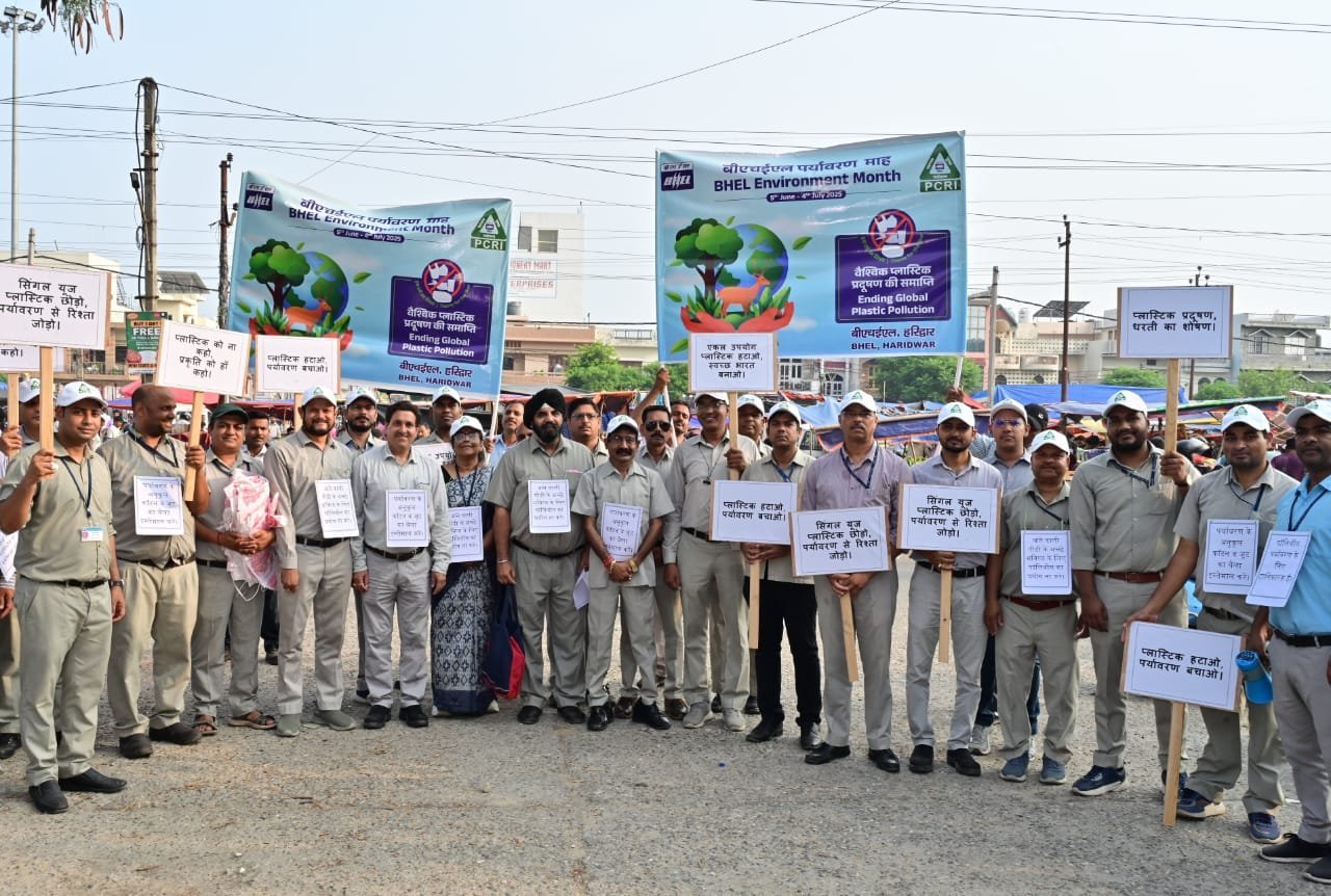 हरिद्वार,: विश्व पर्यावरण दिवस के उपलक्ष्य में बीएचईएल में 05 जून से 04 जुलाई तक “पर्यावरण माह” मनाया जा रहा है । इसके अंतर्गत बीएचईएल के प्रदूषण नियंत्रण अनुसंधान संस्थान (पीसीआरआई) तथा स्वास्थ्य, सुरक्षा एवं पर्यावरण विभाग (एचएसई) द्वारा सिंगल यूज प्लास्टिक का उपयोग न करने संबंधी जागरूकता अभियान चलाए जा रहे हैं । बीएचईएल हरिद्वार के महाप्रबंधक एवं प्रमुख श्री रंजन कुमार के दिशा-निर्देश में, उपनगरी के सेक्टर-एक व चार तथा शिवालिक नगर के पीठ बाजारों में यह अभियान चलाए गए ।