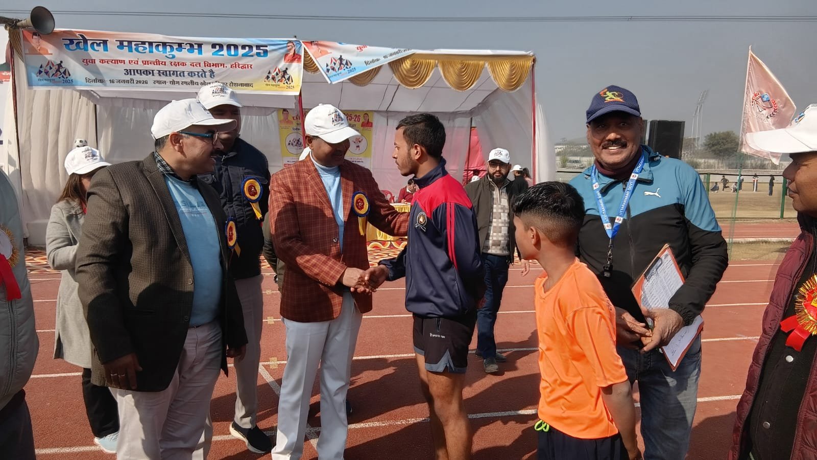 हरिद्वार।खेल महाकुम्भ 2025-20 के अन्तर्गत संसदीय क्षेत्र स्तर पर मा० लोकसभा सांसद चैम्पियनशिप ट्रॉफी का आयोजन दिनांक 16.01.2026 को योगस्थली खेल परिसर, रोशनबाद, हरिद्वार में युवा कल्याण विभाग के तत्वाधान में किया गया। उक्त आयोजन में मुख्य अतिथि के रूप में श्री आदेश चौहान जी, भा० विधायक, विधानसभा क्षेत्र रानीपुर, द्वारा खेलकूद प्रतियोगिताओं का उद्घाटन किया गया एवं दीप व मशाल प्रज्जवलन कर खेलकूद प्रतियोगिता का शुभारम्भ किया गया। विशिष्ट अतिथि श्री प्रिंस लोहाट, जिला महामंत्री अनुसूचित जाति मोर्चा, भारतीय जनता पार्टी, श्री आकाश कुमार, बूत अध्यक्ष भारतीय जनता पार्टी, श्री गौरव सारश्वत, वाईस चेयरमैन एक्सिस बैंक प्रतियोगिता में उपस्थित थे।