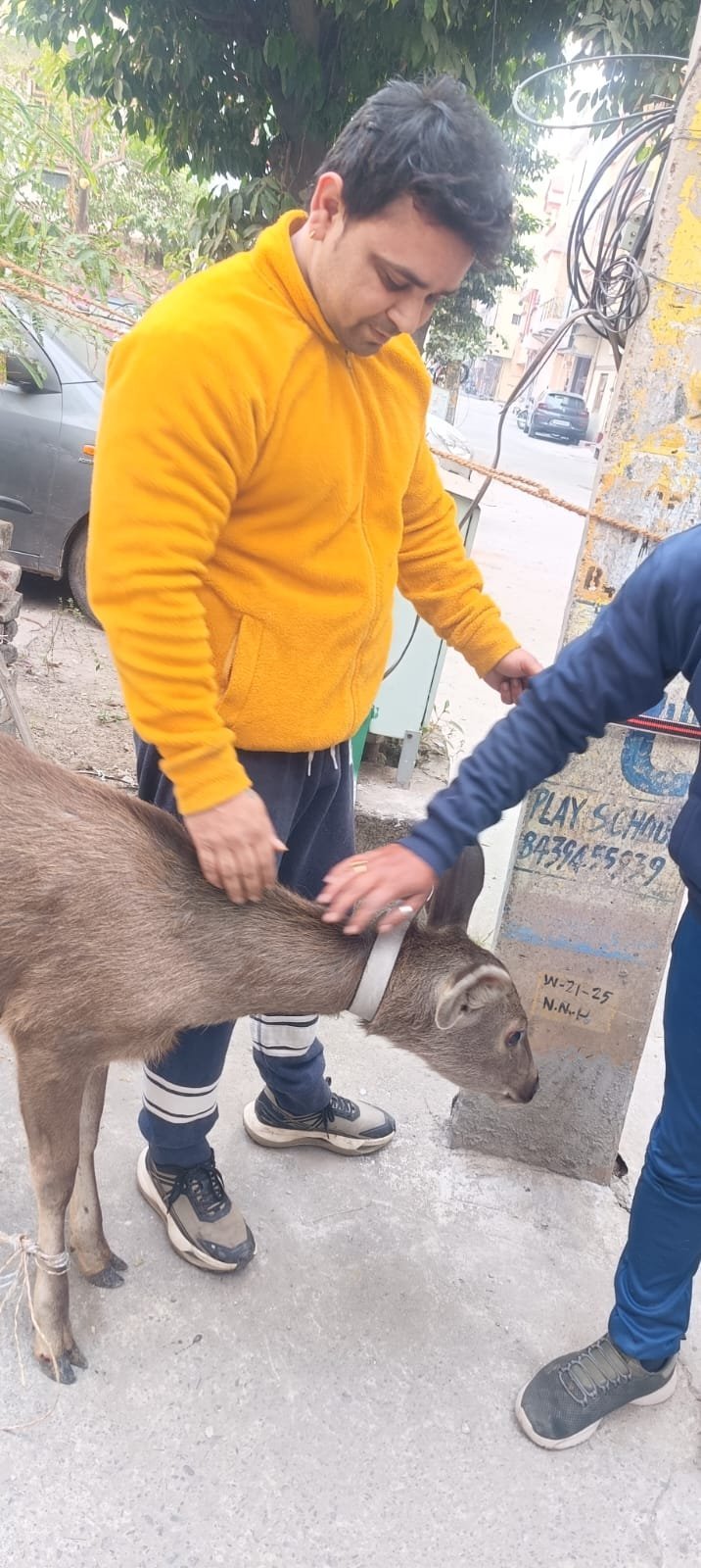 स्थानीय निवासियों द्वारा तत्काल Dial 112 पर सूचना दी गई। मामला वन विभाग से संबंधित होने के बावजूद, सूचना मिलते ही पुलिस टीम ने त्वरित कार्रवाई करते हुए मौके पर पहुँचकर स्थिति को नियंत्रित किया तथा सांभर के बच्चे को सुरक्षित रूप से संभाला।