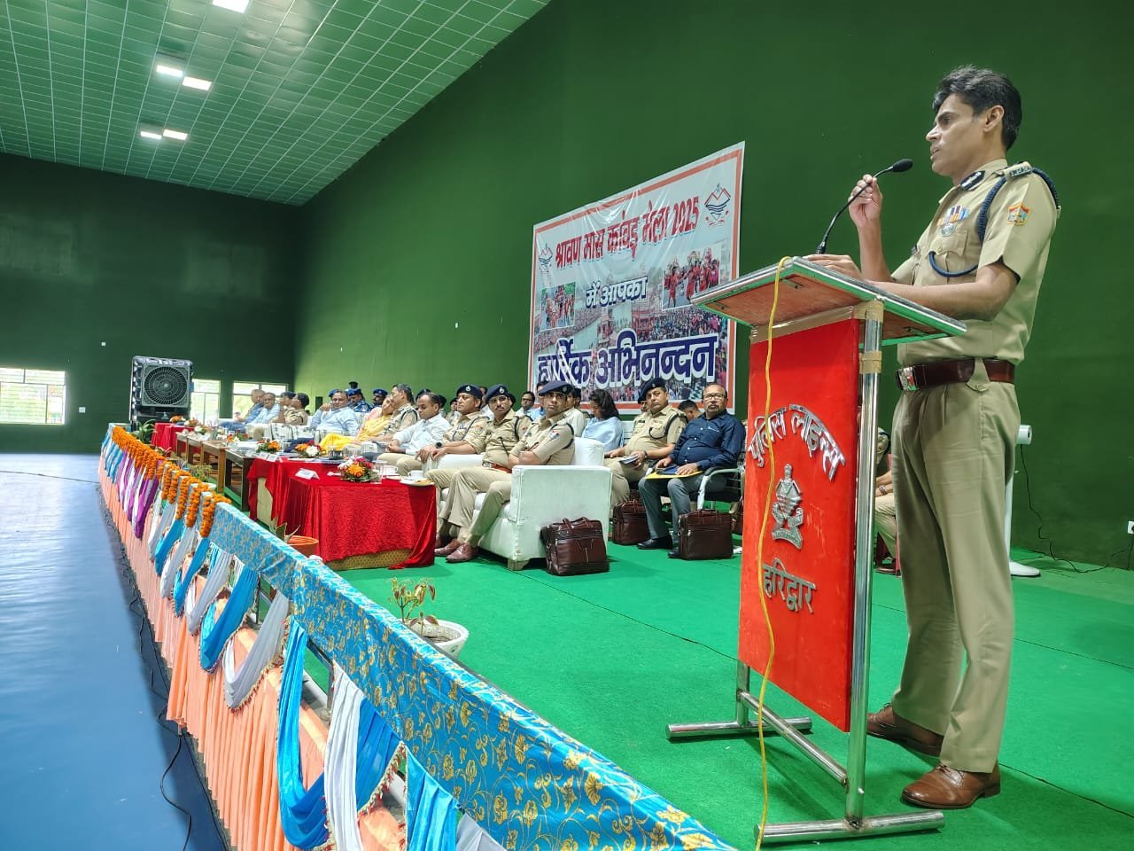 अपने संबोधन के दौरान ADG L/O द्वारा पिछली कांवड़ यात्रा एवं वर्तमान में प्रचलित चारधाम यात्रा के दौरान उमड़ी भीड़ के दृष्टिगत कांवड़ मेला को एक चैलेंज के रूप में लेकर पूर्ण मनोयोग से इसे सकुशल संपन्न कराने हेतु प्रोत्साहित किया गया। साथ ही किसी भी प्रकार की अफवाह को फैलने से रोकने व दुर्घटना होने पर बिना पल गंवाए अपने ऑफिसर्स को सूचना देकर उनके आने तक व्यवस्थाओं को सुचारू करने के प्रयास करने के निर्देश भी मातहत को दिए गए। सभी लोग सतर्क रहेंगे अपने ड्यूटी प्वांइट पर मुक दर्शक बनकर न रहें अपने आस पास की प्रत्येक जानकारी ड्यूटी पर नियुक्त जवान को होने आवश्यक है छोटी-छोटी घटना बड़ा रुप ले लेती है जिससे हमें समय रहते हुए घटना स्तल पर पंचायत न बेठाकर भीड़ को शांत कर तितर –बितर करना है ।