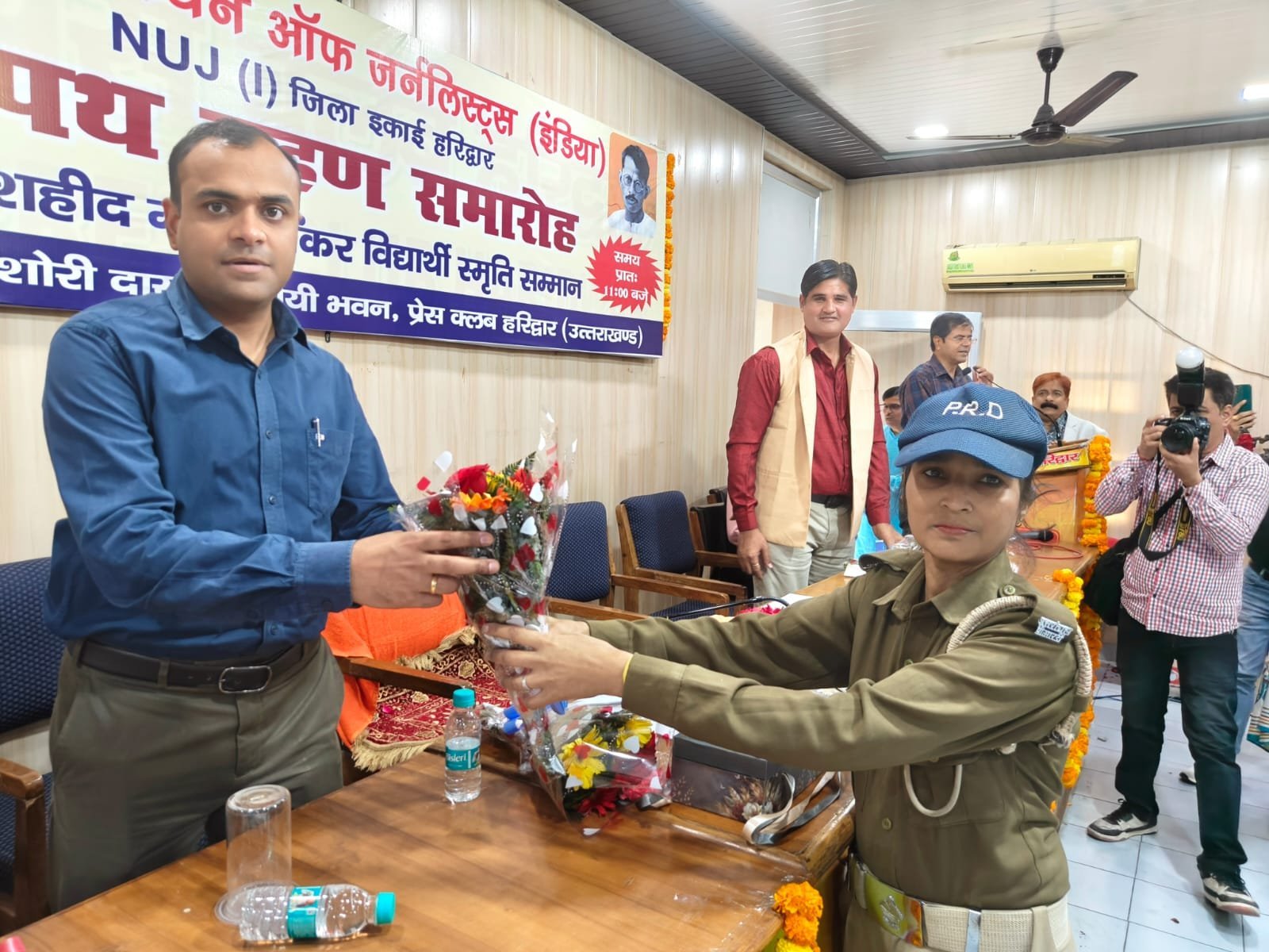 हरिद्वार प्रेस क्लब में एन.यू. जे का शपथ ग्रहण समारोह आयोजित किया गया जिसमें उपस्थित जिलाधिकारी मयूर दीक्षित महोदय जी को सूचना कार्यालय में तैनात गीता राजपूत पी आर डी ने पुष्प गुच्छ भेंट किया।