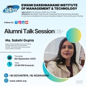 हरिद्वार।। स्वामी दर्शनानन्द इंस्टिट्यूट ऑफ मैंनेजमेंट एण्ड टैक्नोलॉजी (एसडीआईएमटी) में आज एक दिवसीय कार्यशाला का आयोजन हुआ, जिसका कोर्डिनेशन एसिस्टेंट प्रोफेसर मिस दिव्या राजपूत ने किया। इस कार्यशाला में डेमिगोड एग्रो फूड प्रा0लि0 की मार्केटिंग एण्ड प्रोडक्ट डेवलपमेंट हैड मिस साक्षी गुप्ता ने छात्र-छात्राओं को एंटरप्रन्योरशिप एवं उसकी महत्वता पर प्रकाश डाला।