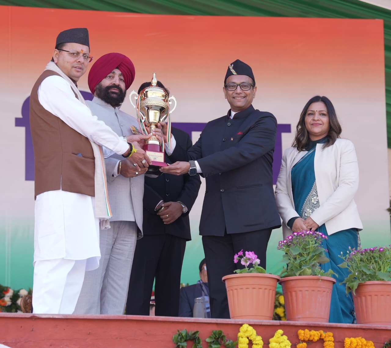 परेड ग्राउंड में आयोजित इस समारोह में पूर्व राज्यपाल महाराष्ट्र एवं पूर्व मुख्यमंत्री उत्तराखण्ड श्री भगत सिंह कोश्यारी, पूर्व मुख्यमंत्री उत्तराखण्ड डॉ. रमेश पोखरियाल ‘निशंक’, मुख्यमंत्री की धर्मपत्नी श्रीमती गीता धामी, कैबिनेट मंत्री सुबोध उनियाल, सांसद नरेश बंसल, सांसद महेन्द्र भट्ट, विधायक खजान दास, मेयर देहरादून श्री सौरभ थपलियाल, मुख्य सचिव श्री आनन्द बर्द्धन, पुलिस महानिदेशक श्री दीपम सेठ, सचिव श्री राज्यपाल श्री रविनाथ रामन, जिलाधिकारी देहरादून सविन बंसल, एसएसपी अजय सिंह सहित पुलिस तथा प्रशासन के वरिष्ठ अधिकारीगण, जनप्रतिनिधि गण एवं जनसामान्य लोग भी उपस्थित रहे।