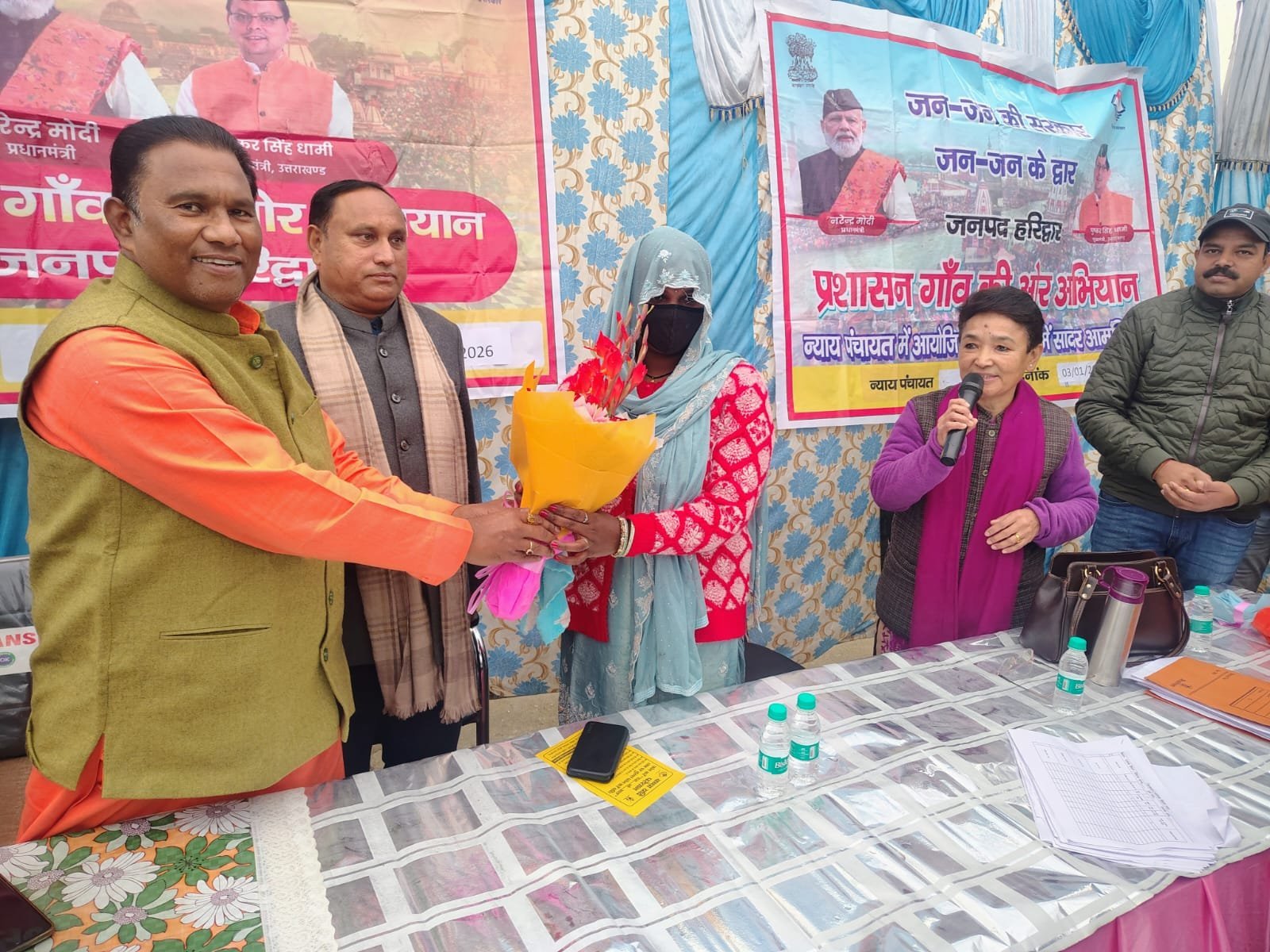 कार्यक्रम को संबोधित करते हुए उपाध्यक्ष, समाज कल्याण योजनाएं अनुश्रवण समिति (राज्यमंत्री स्तर)देशराज कर्णवाल ने कहा कि प्रदेश के यशस्वी मुख्यमंत्री श्री पुष्कर सिंह धामी जी के निर्देशानुसार प्रदेश की सभी न्याय पंचायतों में यह अभियान चलाया जा रहा है। इसका उद्देश्य विभिन्न विभागों द्वारा संचालित जन-कल्याणकारी योजनाओं का लाभ पात्र नागरिकों तक पहुँचाना है तथा उनकी समस्याओं का त्वरित गति से समाधान सुनिश्चित करना है।