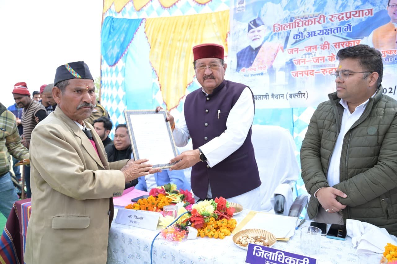 रुद्रप्रयाग। मा० मुख्यमंत्री उत्तराखण्ड के निर्देशानुसार आम जनमानस को केंद्र एवं राज्य सरकार की जनकल्याणकारी योजनाओं का लाभ एक ही स्थान पर उपलब्ध कराने तथा जनसमस्याओं के त्वरित एवं प्रभावी समाधान के उद्देश्य से प्रदेशभर में “जन-जन की सरकार, जन-जन के द्वार” अभियान संचालित किया जा रहा है। इसी क्रम में जिलाधिकारी रुद्रप्रयाग विशाल मिश्रा के कुशल नेतृत्व में जनपद की 27 न्याय पंचायतों में बहुउद्देशीय शिविर आयोजित किए जा रहे हैं।