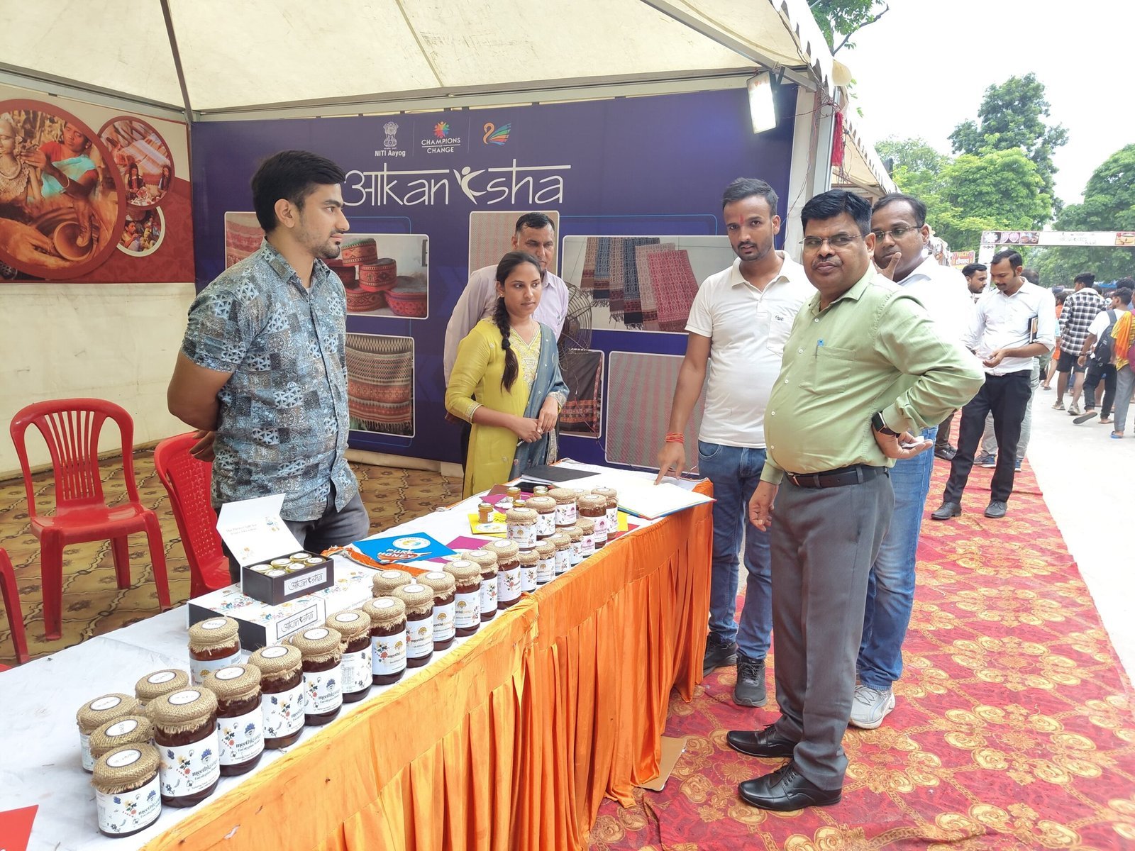 हाट के पहले दिन, विभिन्न प्रकार के उत्पाद आकर्षण का केंद्र रहे, जिनमें डेयरी उत्पाद, जूट के बैग व वस्तुएँ, हस्तनिर्मित वस्त्र, चुनरियाँ, शहद, सिंघाड़े के आटे के बिस्कुट, लिप्पन आर्ट और राखियाँ शामिल थे। कुल 8 स्टॉलों के माध्यम से आज ₹26,720 की शानदार बिक्री दर्ज की गई, जो इस पहल की सफल शुरुआत का स्पष्ट संकेत है।