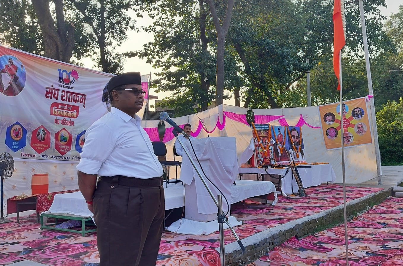 बहादराबाद खण्ड के रोहलकी-किशनपुर में आयोजित विजयदशमी उत्सव में स्वयंसेवकों को सम्बोधित करते हुए कहा क्षेत्र प्रचार प्रमुख पदम सिंह ने कहा कि गांव व्यवस्था में पाँच लोगों की पंचायत राय को पंच परमेश्वर की आदेश मानते थे, भारतीय सनातन परंपरा में पंच देव पूजा का विधान है, इसी तरह संघ शताब्दी वर्ष में पंच परिवर्तन से समाज परिवर्तन का संकल्प लिया है। कुटुम्भ प्रबोध,समाजिक समरसता व सदभाव,पर्यावरण,नागरिक कर्यव्य व स्व: का भाव ऐसे पंच बिंदुओं पर समाज जागरूक हो तभी भारत विश्व गुरु बना रहेगा।