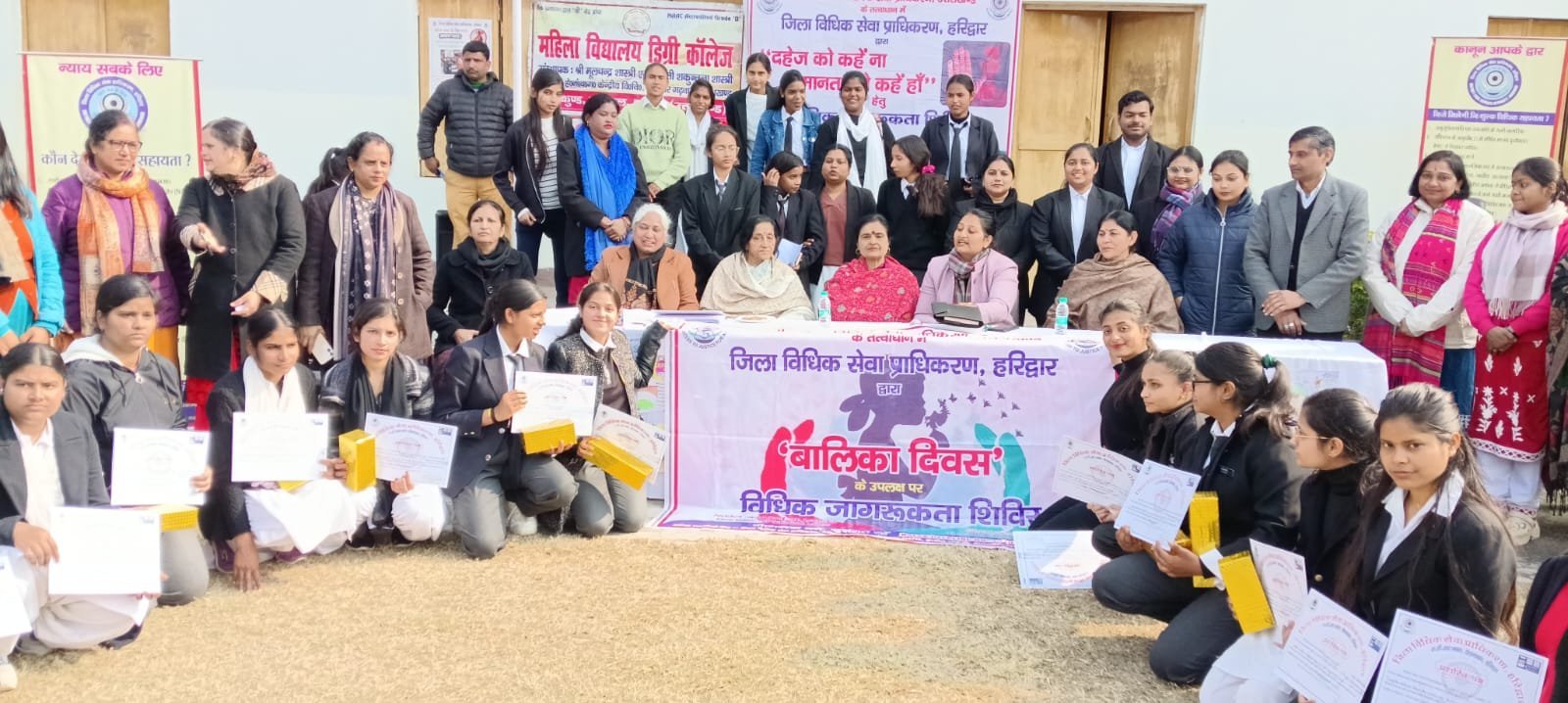 हरिद्वार। राज्य विधिक सेवा प्राधिकरण निर्देशानुसार राष्ट्रीय बालिका दिवस के अवसर पर जिला विधिक सेवा प्राधिकरण की ओर से महिला महाविद्यालय डिग्री कालेज कनखल में एक विधिक साक्षरता एवं जागरूकता शिविर का आयोजन किया गया।
