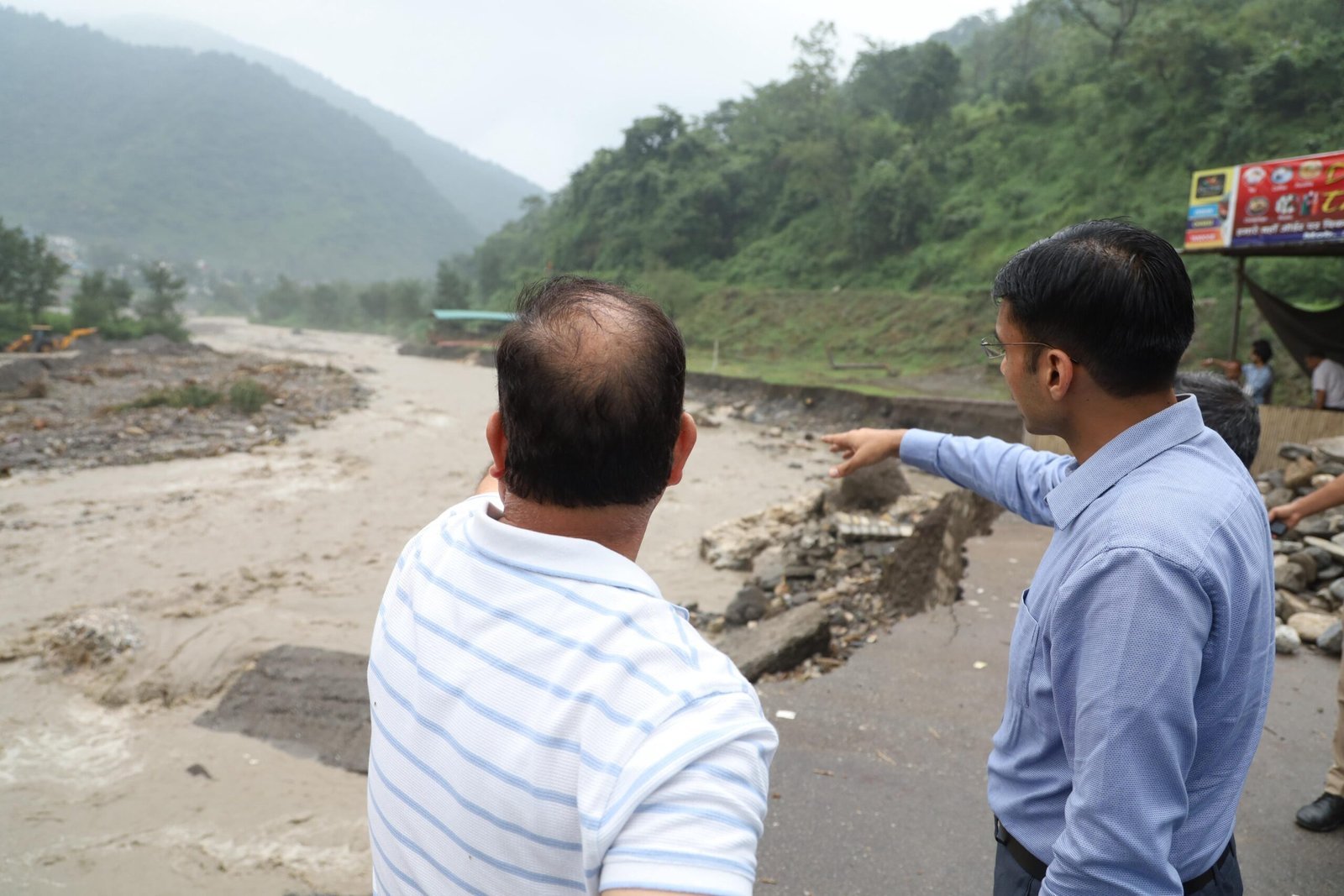 अतिवृष्टि के कारण कुमाल्डा, द्वारा झूला पुल की एप्रोच धस गई थी। यहां पर खेल मैदान भी पूरी तरह से वॉसआउट हुआ है। लोनिवि द्वारा यहां पर एप्रोच ठीक कर यातायात सुचारू कर दिया गया है। जिलाधिकारी ने नदी को चौनलाइज करने के बाद वयारक्रेट कर पुल की एप्रोच को शीघ्र ठीक कराने के निर्देश दिए। वही जिलाधिकारी ने मालदेवता मोटर मार्ग पर किसनपुर बांडावाली में सड़क के 150 मीटर वॉसआउट पोर्सन का स्थलीय निरीक्षण किया। यहां पर अनधिकृत एप्रोच बनाकर नदी का रूख पलटने और रिजाल्ट निर्माण के कारण सरकारी सपंत्ति को करीब 06 करोड़ का नुकसान पहुंचा है। जिलाधिकारी ने इस पर सख्त रूख इख्तियार करते हुए नदी का रूख पटलकर अनधिकृत एप्रोच एवं रिजाल्ट निर्माण के खिलाफ उच्च स्तरीय जांच कराने की संस्तुति कर दी है। साथ ही जिलाधिकारी ने लोनिवि को यहां पर नदी को चौनलाइज करते हुए शीघ्र सड़क निर्माण कार्य शुरू करने के निर्देश भी दिए है। मालदेवता केशरवाला में वॉसआउट मोटर मार्ग का निरीक्षण करते हुए जिलाधिकारी ने वायरक्रेट लगाकर शीघ्र रास्ता चालू करने और नदी को चौनलाइज करते हुए सड़क के वॉसआउट पोर्सन ठीक करने के निर्देश दिए।