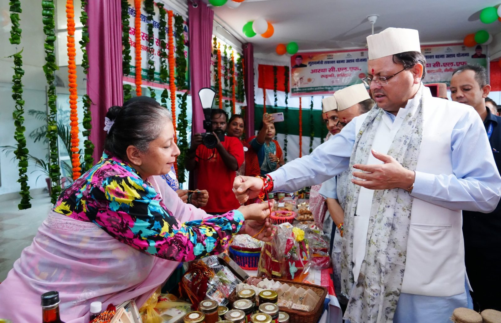 मुख्यमंत्री श्री पुष्कर सिंह धामी ने सोमवार को सचिवालय परिसर में मुख्यमंत्री सशक्त बहना उत्सव योजना’ अन्तर्गत राज्य स्तरीय कार्यक्रम का समस्त 95 विकासखंडो में शुभारम्भ एवं महिला स्वयं सहायता समूहों द्वारा रक्षाबन्धन पर्व हेतु लगाये गये स्टॉलों का अवलोकन किया |
