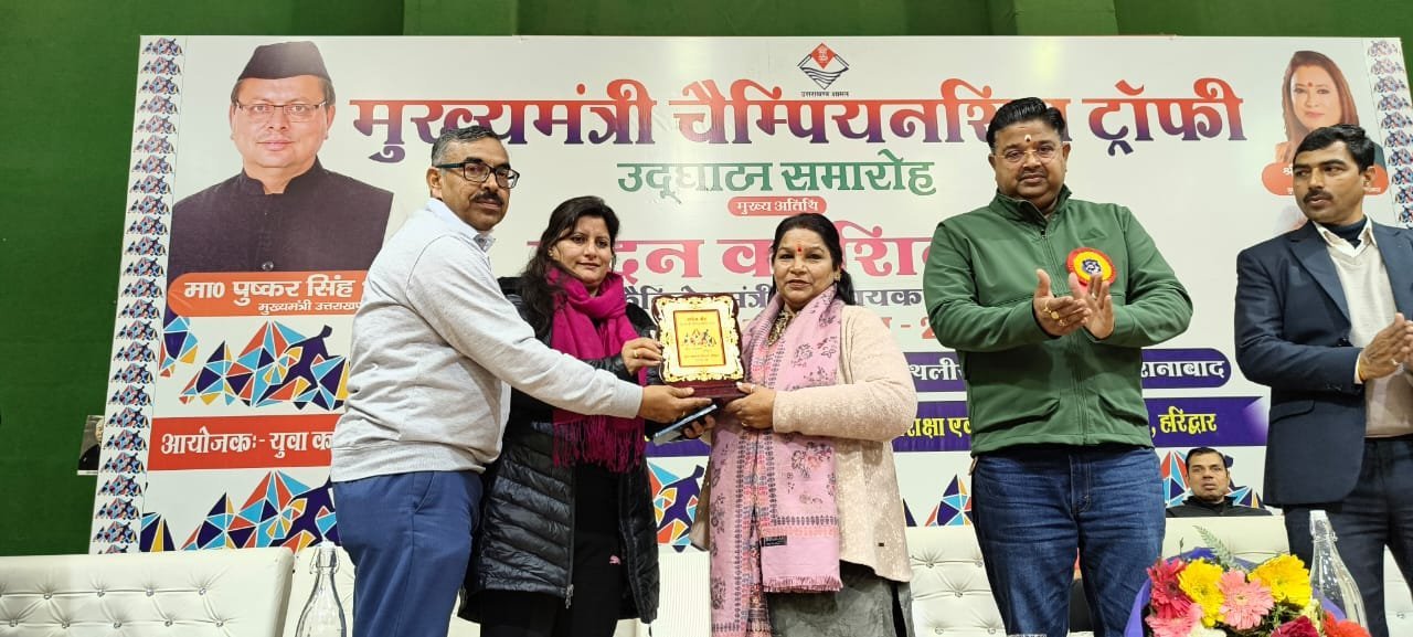 हरिद्वार।खेल महाकुम्भ 2025-26 के अन्तर्गत जनपद हरिद्वार में मा० मुख्यमंत्री चैम्पियनशिप ट्रॉफी 2025 (राज्य स्तरीय खेलकूद प्रतियोगिता) का उ‌द्घाटन दिनांक 24.01.2026 को योगस्थली खेल परिसर, रोशनबाद, हरिद्वार में जिला युवा कल्याण एवं प्रान्तीय रक्षक दल अधिकारी की अध्यक्षता में किया गया। उक्त आयोजन में मुख्य अतिथि के रूप में श्रीमती डॉ० किरण जैसल, मा० मेयर हरिद्वार, एवं विशिष्ट अतिथि भारतीय जनता पार्टी के मीडिया प्रभारी श्री विकास तिवारी, एवं मलखम्ब एसोसिएशन के अध्यक्ष श्री रमेश द्वारा खेलकूद प्रतियोगिताओं का उद्घाटन किया गया, मा० मेयर जी द्वारा दीप प्रज्जवलन कर खेलकूद प्रतियोगिता का शुभारम्भ किया गया एवं प्रतिभागियों को सम्बोधित कर उत्साहवर्द्धन किया गया। उ‌द्घाटन समारोह में जिला युवा कल्याण एवं प्रान्तीय रक्षक दल अधिकारी, हरिद्वार श्री प्रमोद चन्द्र पाण्डेय, जिला क्रीडाधिकारी, श्रीमती सबाली गुरूंग, प्रभारी जिला युवा कल्याण अधिकारी श्री मुकेश कुमार भटट् मुख्यमंत्री चैम्पियनशिप ट्रॉफी (राज्य स्तरीय खेलकूद प्रतियोगिता) 2025, क्षेत्रीय युवा कल्याण एवं प्रारद अधिकारी पौड़ी गढ़वाल श्रीमती पूनम मिश्रा, क्षेत्रीय युवा कल्याण एवं प्रारद अधिकारी रुड़‌की, श्री अनिल कुमार, बहादराबाद श्री सोनू कुमार, भगवानपुर श्री विक्रान्त चौधरी, खानपुर श्री आशीष, प्रशासनिक अधिकारी, युवा कल्याण विभाग, हरिद्वार श्री जितेन्द्र पुण्डीर, खेल विभाग के जिला खेल समन्वयक श्री गजेन्द्र चौधरी एवं श्री अंजेश, शिक्षा विभाग के लेखा एवं निर्णायक तथा युवा कल्याण विभाग से अवैतनिक व्यायाम /खेल प्रशिक्षक तथा अन्य विभागीय कार्मिक उपस्थित रहे। आयोजित खेलकूद प्रतियोगिता में पौड़ी गढ़वाल, टिहरी गढ़वाल, ऊधमसिंहनगर, नैनीताल, अल्मोड़ा, हरिद्वार एवं रुड़की संस्दीय क्षेत्र से आए अण्डर 14, अण्डर 19 के बालक/बालिकाओं द्वारा आयोजित निम्न खेलकूद प्रतियोगिताओं में बढ़-चढ़कर प्रतिभाग किया गया- खेलविधा (मलखम्ब, रस्साकसी, गोली (कचां)) उक्त खेलकूद प्रतियोगिताओं के परिणाम निम्नवत हैं:- विजेता संस्दीय क्षेत्र का नाम लोकसभा क्षेत्र हरिद्वार राज्यसभा क्षेत्र देहरादून राज्यसभा क्षेत्र हरिद्वार (रूड़की) आयुवर्ग अण्डर 14 बालिका खेलविधा रस्साकसी प्रथम प्राप्त स्थान द्वितीय तृतीय ।