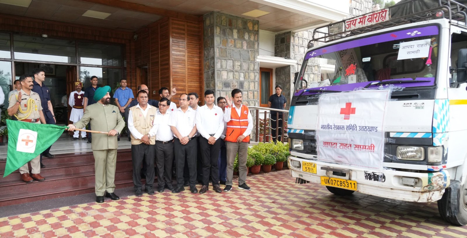 राज्यपाल लेफ्टिनेंट जनरल गुरमीत सिंह (से नि) ने आज राजभवन परिसर से राज्य के सभी जनपदों हेतु भारतीय रेडक्रॉस समिति, नई दिल्ली द्वारा उपलब्ध कराई गई आपदा राहत सामग्री वाहनों को हरी झंडी दिखाकर रवाना किया। आपदा राहत सामग्री के 05 वाहनों में कम्बल, तिरपाल, किचेन सेट और अन्य जरूरी सामान है, जो जरूरतमंदों को जरूरत के समय सम्बंधित जिलों की रेडक्रॉस सोसाइटी द्वारा उपलब्ध कराई जाएगी।