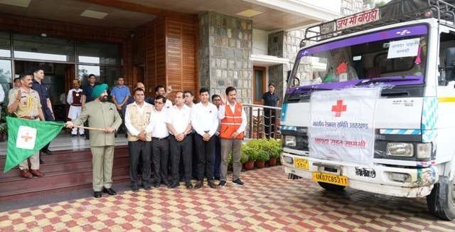 राज्यपाल लेफ्टिनेंट जनरल गुरमीत सिंह (से नि) ने बुधवार को राजभवन परिसर से राज्य के सभी जनपदों हेतु भारतीय रेडक्रॉस समिति, नई दिल्ली द्वारा उपलब्ध कराई गई आपदा राहत सामग्री वाहनों को हरी झंडी दिखाकर रवाना किया। आपदा राहत सामग्री के 05 वाहनों में कम्बल, तिरपाल, किचेन सेट और अन्य जरूरी सामान है, जो जरूरतमंदों को जरूरत के समय सम्बंधित जिलों की रेडक्रॉस सोसाइटी द्वारा उपलब्ध कराई जाएगी।