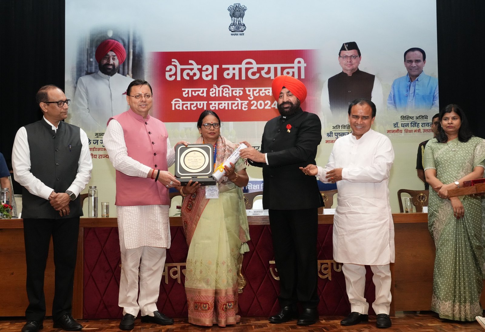राजभवन देहरादून। शिक्षक दिवस के अवसर पर शुक्रवार को राजभवन में ‘‘शैलेश मटियानी राज्य शैक्षिक पुरस्कार’’ सम्मान समारोह आयोजित हुआ। समारोह में राज्यपाल लेफ्टिनेंट जनरल गुरमीत सिंह (से नि), मुख्यमंत्री श्री पुष्कर सिंह धामी और शिक्षा मंत्री डॉ. धन सिंह रावत ने वर्ष-2024 में शैलेश मटियानी राज्य शैक्षिक पुरस्कारों के लिए चयनित 16 शिक्षक एवं शिक्षिकाओं को सम्मानित किया। वर्ष-2024 में चयनित 09 प्रारम्भिक शिक्षक, 05 माध्यमिक शिक्षक, 01 शिक्षक प्रशिक्षक एवं 01 संस्कृत शिक्षक को यह सम्मान प्रदान किया गया है। (सूची संलग्न)