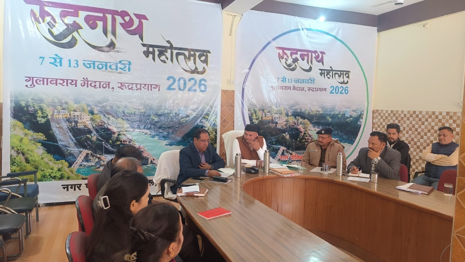 रुद्रप्रयाग।आज दिनांक 22.12.2025 को नगर पालिका परिषद, रुद्रप्रयाग के सभागार में मा० अध्यक्ष नगर पालिका परिषद, रुद्रप्रयाग संतोष रावत की अध्यक्षता में रूद्रनाथ महोत्सव मेला–2026 के आयोजन को लेकर एक महत्वपूर्ण बैठक आहूत की गई। बैठक में समस्त जनपद स्तरीय अधिकारीगण उपस्थित रहे।