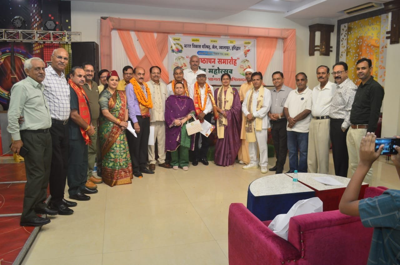 हरिद्वार। भारत विकास परिषद भेल ज्वालापुर हरिद्वार शाखा का अधिष्ठापन समारोह एवं तीज महोत्सव कार्यक्रम होटल मधुबन शंकराचार्य चौक हरिद्वार में बड़े हर्ष के साथ आयोजित किया गया। समारोह का शुभारंभ मुख्य अतिथि डॉ श्री संदीप वेदालंकार एवं अन्य विशिष्ट अतिथियों द्वारा दीप प्रज्वलन द्वारा किया गया। इसके पश्चात मुख्य अतिथि एवं अन्य अतिथियों द्वारा भारत माता एवं श्री विवेकानंद जी की मूर्ति पर माल्यार्पण किया गया! बेटी बचाओ बेटी पढ़ाओ की ब्रांड एम्बेसडर डॉ श्रीमती मनु शिवपुरी द्वारा वंदे मातरम गीत प्रस्तुत किया गया जिसमें सभी उपस्थित अतिथियों, सदस्यों, महिलाओं और बच्चों ने खड़े होकर उनका साथ दिया। ज्वालापुर की बालिका सुश्री वैष्णवी झा ने बहुत ही सुंदर नृत्य प्रस्तुत किया जिसने सबका मन मोह लिया। तत्पश्चात मुख्य अतिथि, मंचासीन अन्य अतिथियों एवं अन्य शाखाओं से आए हुए दायित्वधारियों का माला और अंग वस्त्र से सम्मान किया गया।