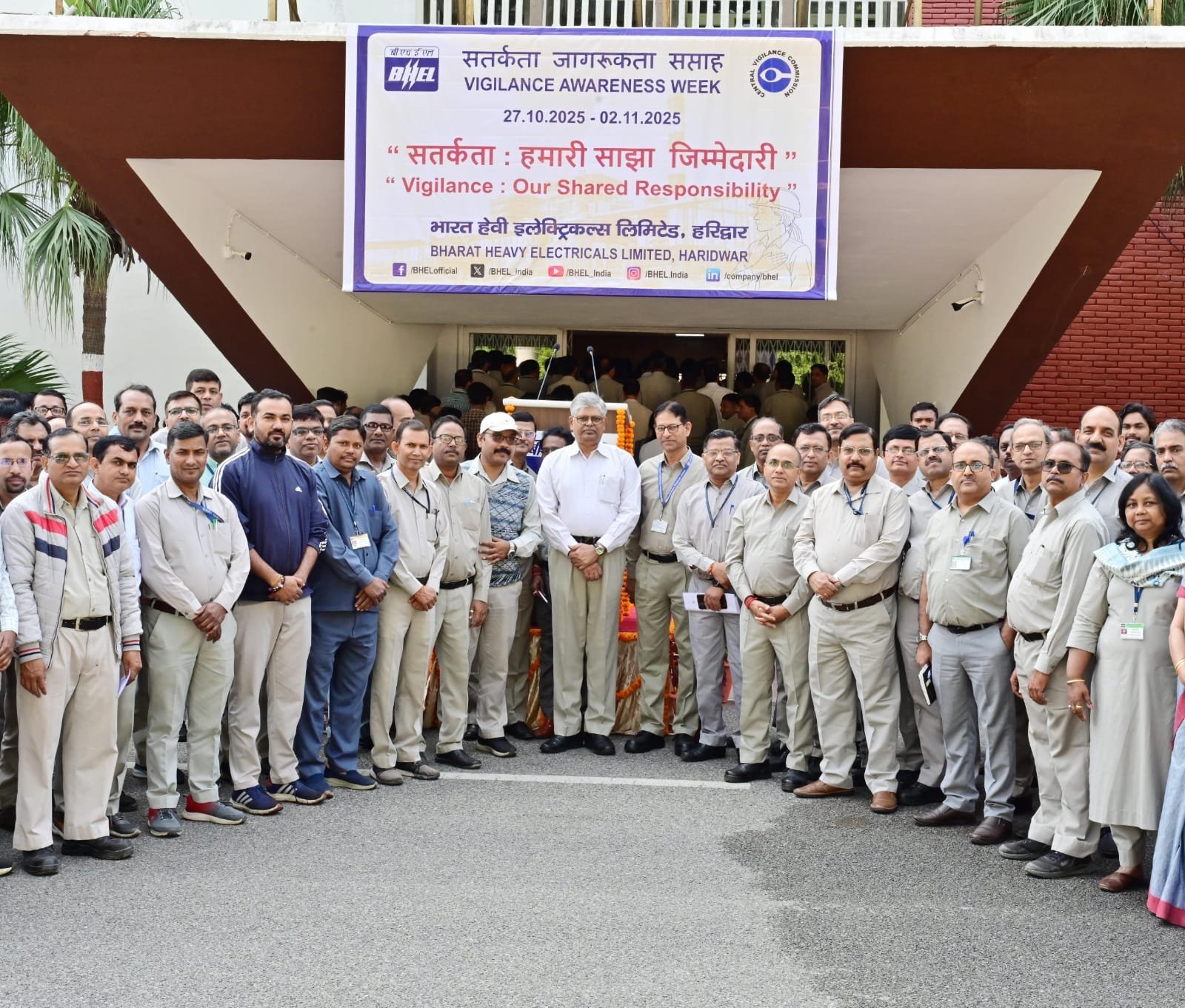 हरिद्वार।सार्वजनिक जीवन में ईमानदारी तथा सत्यनिष्ठा को बढ़ावा देने के उद्देश्य से, हर वर्ष की भांति इस वर्ष भी बीएचईएल हरिद्वार में सतर्कता जागरूकता सप्ताह – 2025 मनाया जा रहा है । 27 अक्टूबर से 02 नवम्बर तक चलने वाले इस वर्ष के सतर्कता जागरुकता सप्ताह की विषयवस्तु है “सतर्कता: हमारी साझा जिम्मेदारी” ।
