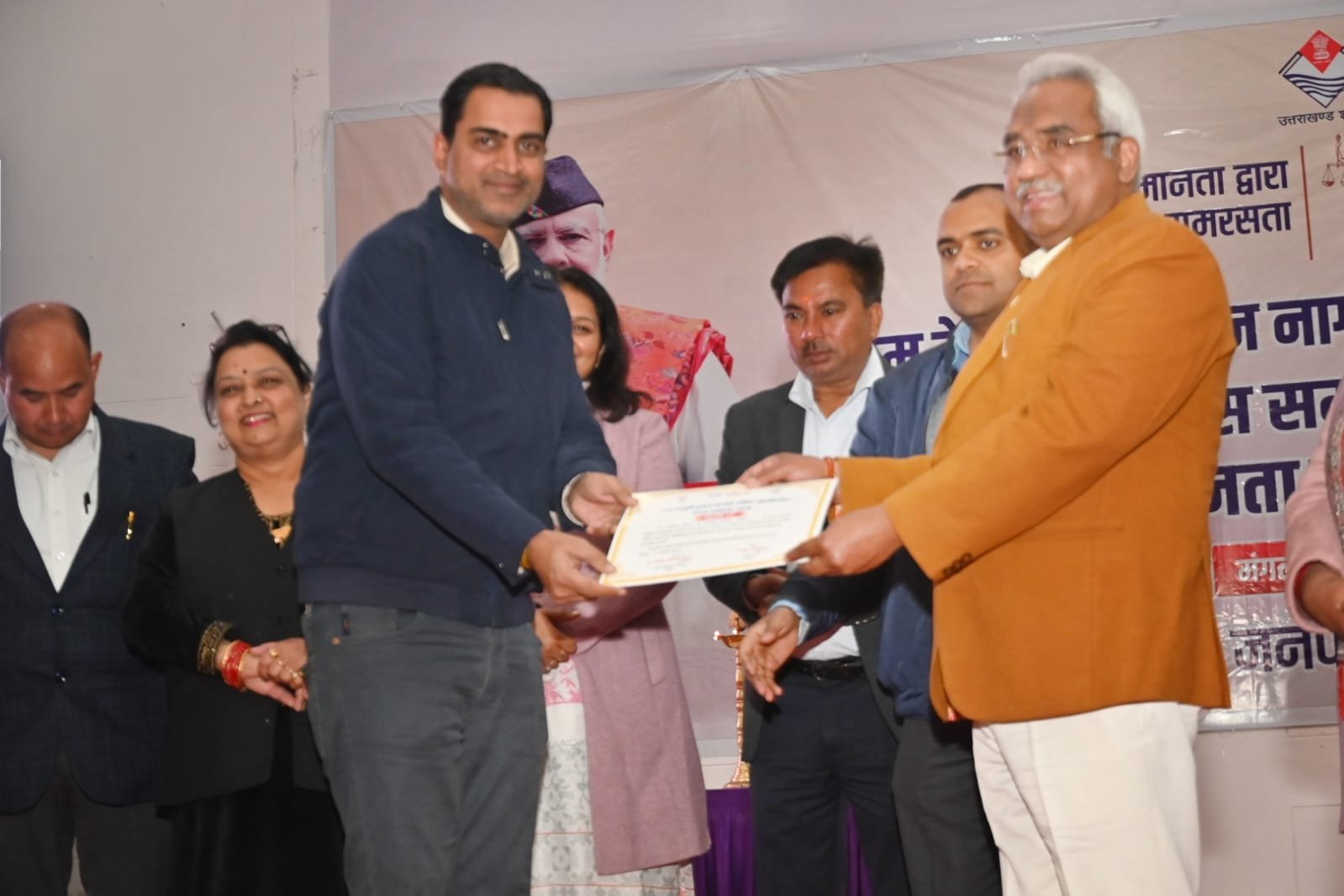 जिसमें सब रजिस्ट्रार रुड़की गिरीश सेमवाल, सब रजिस्ट्रार हरिद्वार गौरव सागर,सब रजिस्ट्रार रुड़की श्वेता बेनी,सब रजिस्ट्रार मंगलौर  उत्तम सिंह नेगी,सब रजिस्ट्रार ढंडेरा वीरेंद्र रेंजर,सब रजिस्ट्रार झबरेड़ा हर्षवर्धन सिंह रावत,सब रजिस्ट्रार रामपुर रोहित पंवार,सब रजिस्ट्रार सुल्तानपुर आदमपुर प्रियंका ध्यानी को सम्मानित किया गया।