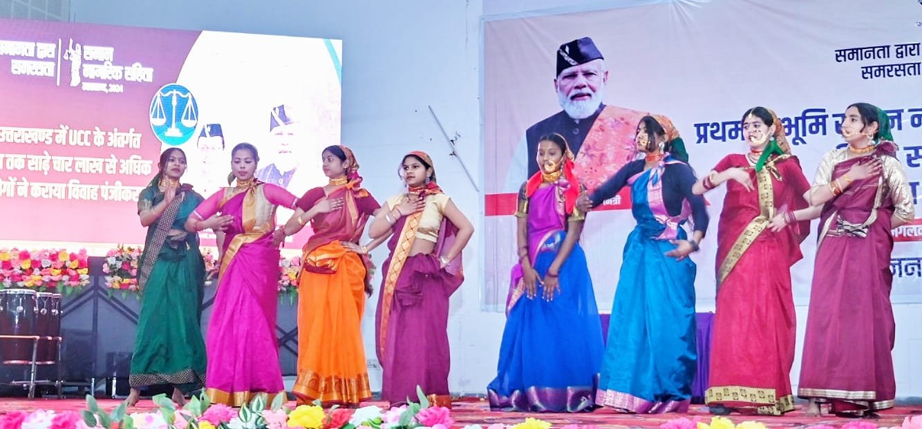 *समान नागरिक संहिता कानून के सफलता पूर्वक एक वर्ष पूर्ण होने के अवसर पर जिला मुख्यालय में ऋषिकुल आयुर्वेदिक महाविद्यालय ऑडिटोरियम में भव्य कार्यक्रम आयोजित किया गया।*