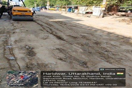 परियोजना प्रबंधक निर्माण एवं अनुरक्षण इकाई गंगा उत्तराखंड पेयजल निगम मिनाक्षी मित्तल ने अवगत कराया है कि जिलाधिकारी के निर्देशों के अनुपालन में केएफडब्लयू वित्त पोषित हरिद्वार जलोत्सारण योजना पैकेज 01 एवं पैकेज 02 के अंतर्गत कराए जा रहे सड़क पुनर्निर्माण संबंधी कार्य जिसके तहत 16 अप्रैल को किए गए निर्माण कार्यों का विवरण निम्नवत है जिसमें- पैकेज 01 में आहलुवालिया हॉस्पिटल सीसी रोड 40 मीटर,पीपल वाली गली सीसी रोड 78 मीटर,शांति मार्ग टाइल्स रोड 20 मीटर, प्रेम विहार चौक सीसी रोड 45 मीटर कार्य पूर्ण कर लिया गया है तथा कुल 183 मीटर कार्य पूर्ण कर लिया गया है। तथा पैकेज 02 के अंतर्गत राज विहार फेस 2 पावर ब्लॉक 14 मीटर, गणपति विहार सीसी रोड 80 मीटर,पीर कॉलोनी पावर ब्लॉक 18 मीटर,मोहन इंक्लेव सीसी रोड 25 मीटर, गणपतिधाम फेस 3 पावर ब्लॉक 15 मीटर कार्य पूर्ण करते हुए कुल 152 मीटर निर्माण कार्य पूर्ण कर लिया गया है ।