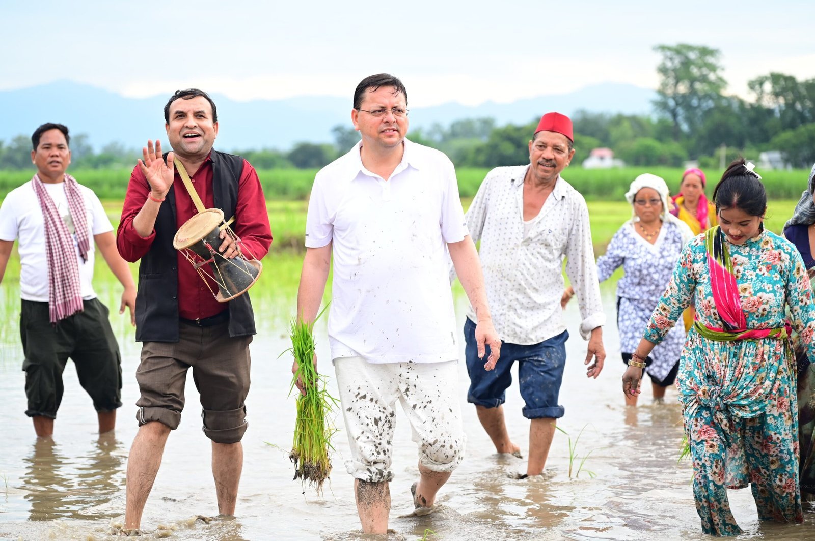खटीमा के नगरा तराई क्षेत्र में उत्तराखंड के मुख्यमंत्री पुष्कर सिंह धामी ने शनिवार को अपने खेत में धान की रोपाई कर किसानों के परिश्रम, त्याग और समर्पण को नमन किया। उन्होंने कहा कि खेतों में उतरकर पुराने दिनों की यादें ताजा हो गईं। मुख्यमंत्री ने कहा कि अन्नदाता न केवल हमारी अर्थव्यवस्था की रीढ़ हैं, बल्कि वे हमारी संस्कृति और परंपराओं के संवाहक भी हैं।