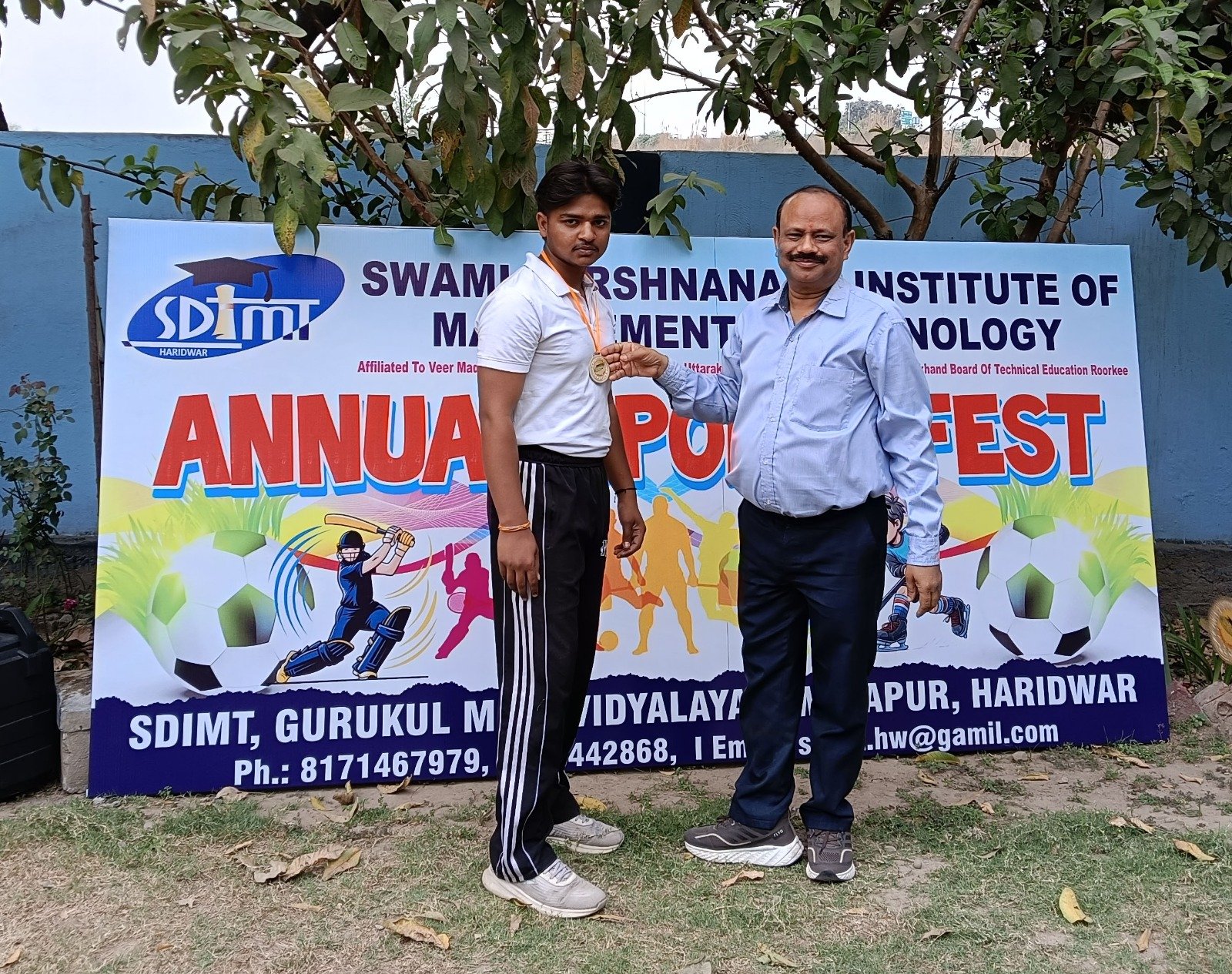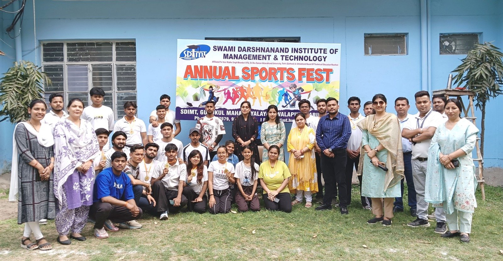 हरिद्वार। स्वामी दर्शनानन्द इंस्टिट्यूट ऑफ मैंनेजमेंट एण्ड टैक्नोलाॅजी, हरिद्वार द्वारा वार्षिक खेल-कुल उमंग का आयोजन किया गया। सर्वप्रथम संस्थान की निदेशक डाॅ0 जयलक्ष्मी एवं अशोक गोतम ने सरस्वती प्रतिमा के आगे दीप प्रज्वलित कर खेलों का उद्घाटन किया। स्पोर्ट्स कोर्डिनेटर पंकज चैधरी ने बताया कि गत वर्षो की भांति इस वर्ष भी खेलों का आयोजन किया जा रहा है, जिनमें बैडमिंटन, वाॅलीबाॅल, 100 मीटर रेस, लाॅंग-जम्प, राॅप स्किप्पिंग आदि खेलांे का आयोजन हुआ। इन खेलों में सौ मीटर दौड़ में खुशी एवं आलोक विजयी हुए, रोप स्किपींग में हर्षिता एवं हितेश विजयी हुए, बैडमिंटन मंे हर्षिता, रोहित विजयी हुए, भानू लाॅंग जम्प में एवं रस्सा कसी में करन, पीयूष, लक्ष्य, रोहित, विजयी हुए तथा गल्र्स टीम में हर्षिता, टीया, जिवांशी विजयी हुई। वाॅलीबाॅल में हितेश सुदन की टीम विजयी हुई।